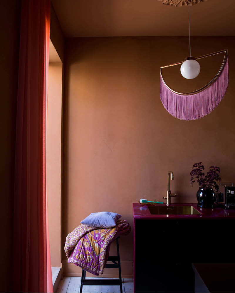 Krista Elvheim er litaglaður og skapandi innanhúss- og blómahönnuður sem býr í Osló. Hún hefur farið margar ferðir til Marokkó og sótt þangað innblástur og fyllt „litabrunninn“ sinn af gullfallegum, brenndum litatónum. Nú hefur hún gerbreytt heimilinu með spartlmálningunni KC14 og Dekso 1 Ultramatt og litavali sem er innblásið af austrænum töfrum.