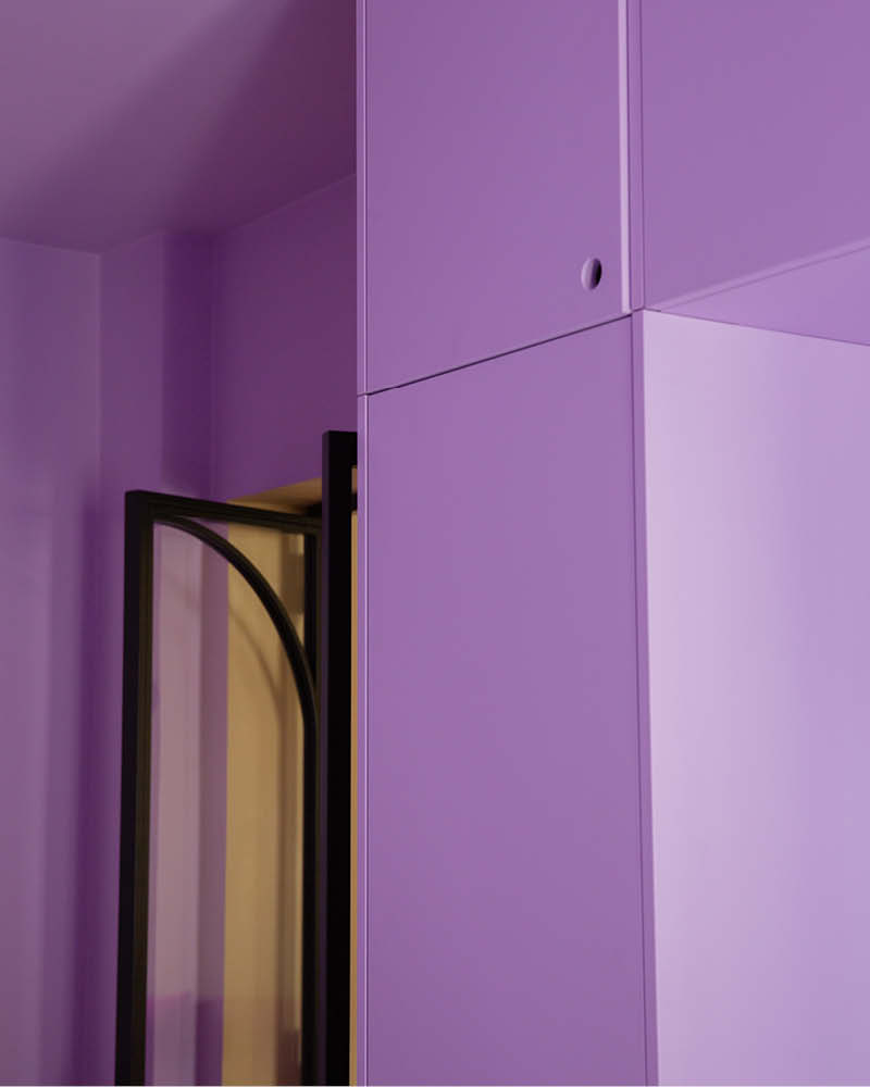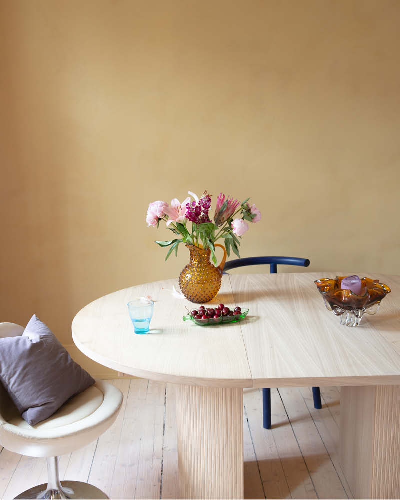 „Þegar við veljum liti á heimilið þarf alltaf að nota hjartað en ekki höfuðið,“ segir hún. Kaldir fjólubláir og lavenderbláir tónar skapa dásamlegar andstæður við bæði KC14 Mustard í stofunni og KC14 Warm Terracotta í eldhúsinu