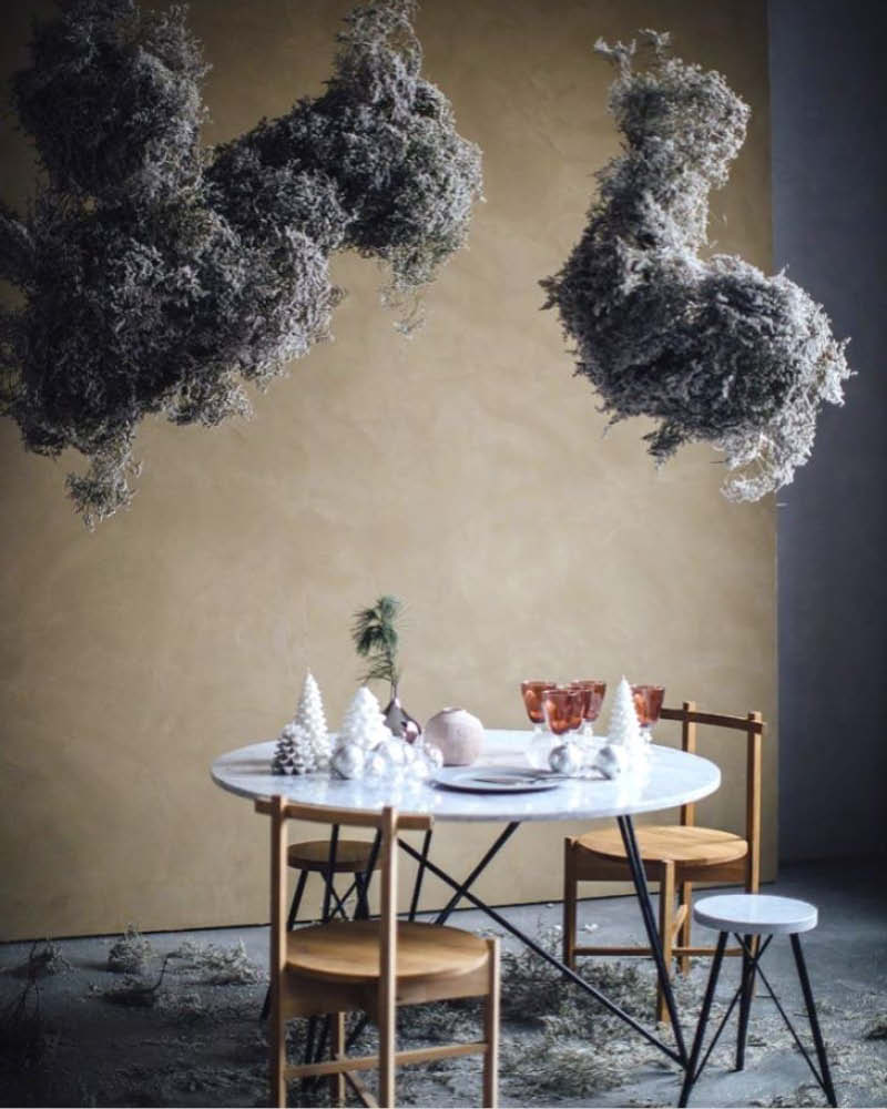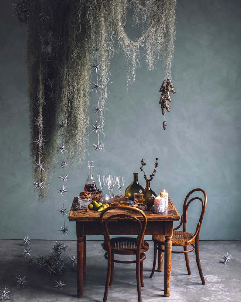 Á jólunum viljum við upplifa hlýju og notalegt andrúmsloft og þá er upplagt að búa sér litríkt umhverfi sem örvar öll skilningarvitin. Sérhver vegglitanna og skreytinganna á myndinni skapar sitt sérstaka andrúmsloft. Í því felst galdur litanna. Bjóddu sjálfa náttúruna velkomna heim til þín með því að nota grænleita litinn Moss eða millidökkgráa litinn Cold Steel. Allt í KC14-línunni gefur þér líflega og silkimjúka áferð. Ef þú ert meira fyrir matta málningu getum við mælt með 4506 Greenfinch og Detale 12 Taupe til að gera allt fallegt og aðlaðandi í kringum þig